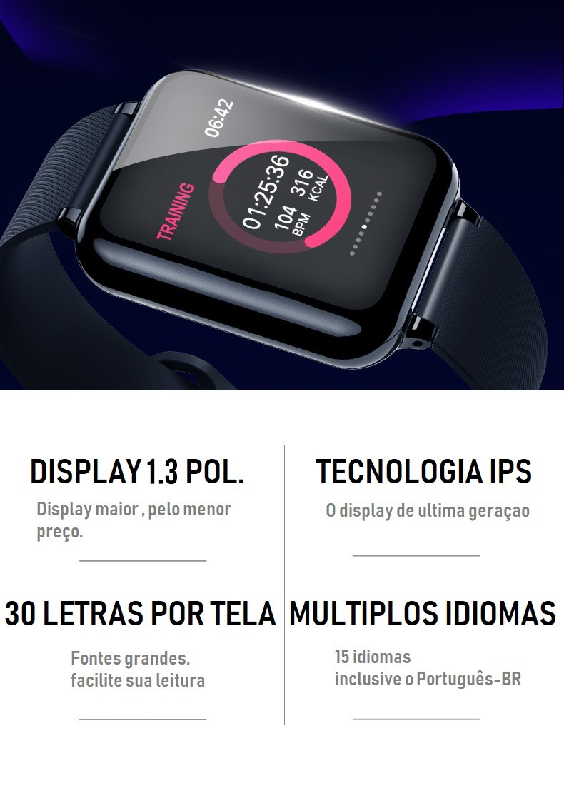 Smartwatch Hero Band, relógio inteligente com bluetooth, seu dia a dia se torna muito mais fácil! Com design bonito e moderno, diferente dos relógios comuns, e tela capacitiva de 1,3 polegadas. Um dos mais procurados do mercado.