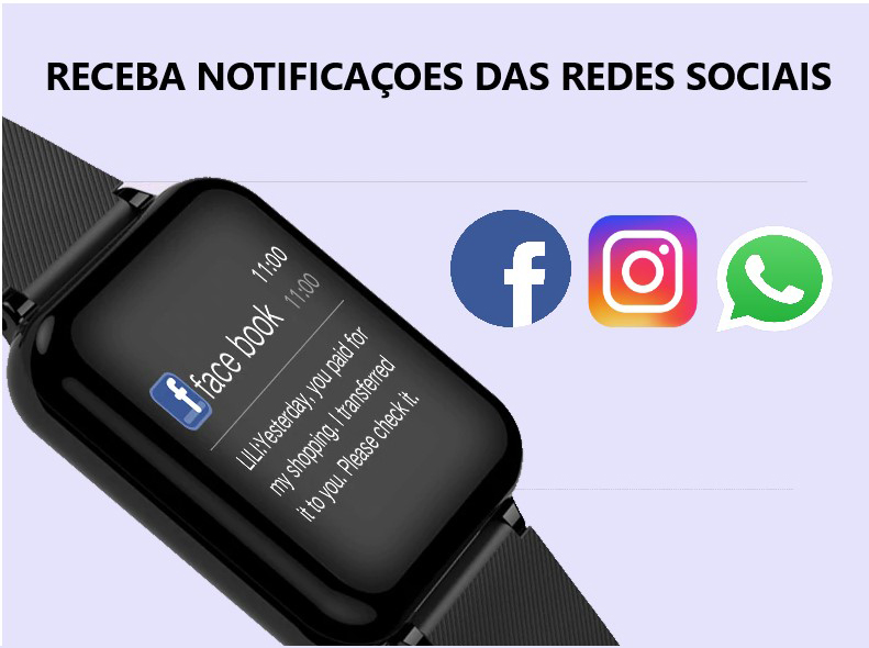 Controle de redes sociais, WhatsApp, SMS e Ligações. (Leia a mensagem recebida no smartwatch)